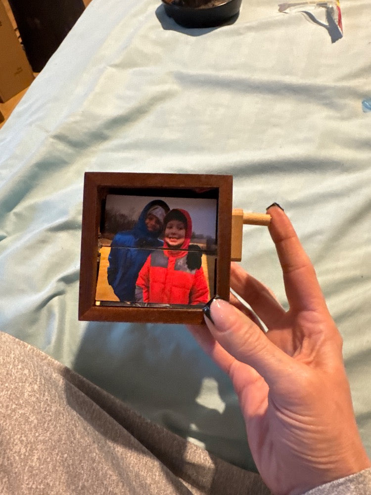 It has soft LED lights, USB charging, a real crank, and your favorite photos inside. But what really matters is how it turns your memories into something you can relive again and again.